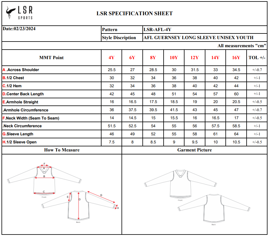 These items are made to order, and production time is 4 weeks and Store Closure date is 30/04/2025. Production will not commence until the store closes, all enquiries should be emailed to admin@lsrsports.com.au.